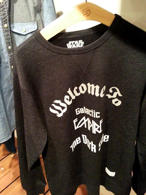 ダース・ヴェイダーつながりで、ロンドン発のストリートブランド「SILAS(サイラス)」とのコラボ商品を直営ショップで現物確認してきました!こちらは、スケートボードに乗るベイダー卿がなんともユーモアに表現されています。スエット・フーディなど秋冬ファッションに役立ちそうです。