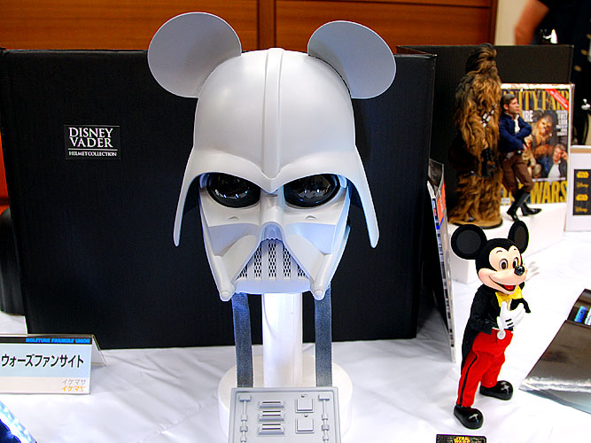 はじめて見る商品の数々。スタッフのお姉さんが「スター・ウォーズ、お好きですか」と後ろから話しかけてきた。「はい」と振り返る。全身スター・ウォーズの身なりで、手にしたパンパンの紙袋からは、ミッキーの耳がカワイく主張しています…。