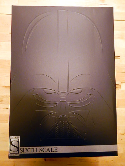艶消しマットブラックのパッケージに、エンボス加工させれたベイダー卿のヘルメットデザイン。サイドショウ1/6サイズ伝統の商品全身写真ではありません。高級感たっぷりの予想を越える豪華な化粧箱にメーカーの本気度を感じます。